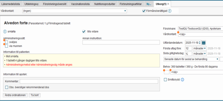 - Du slipper att manuellt justera texter i patientinstruktionen som skickas till apotek.